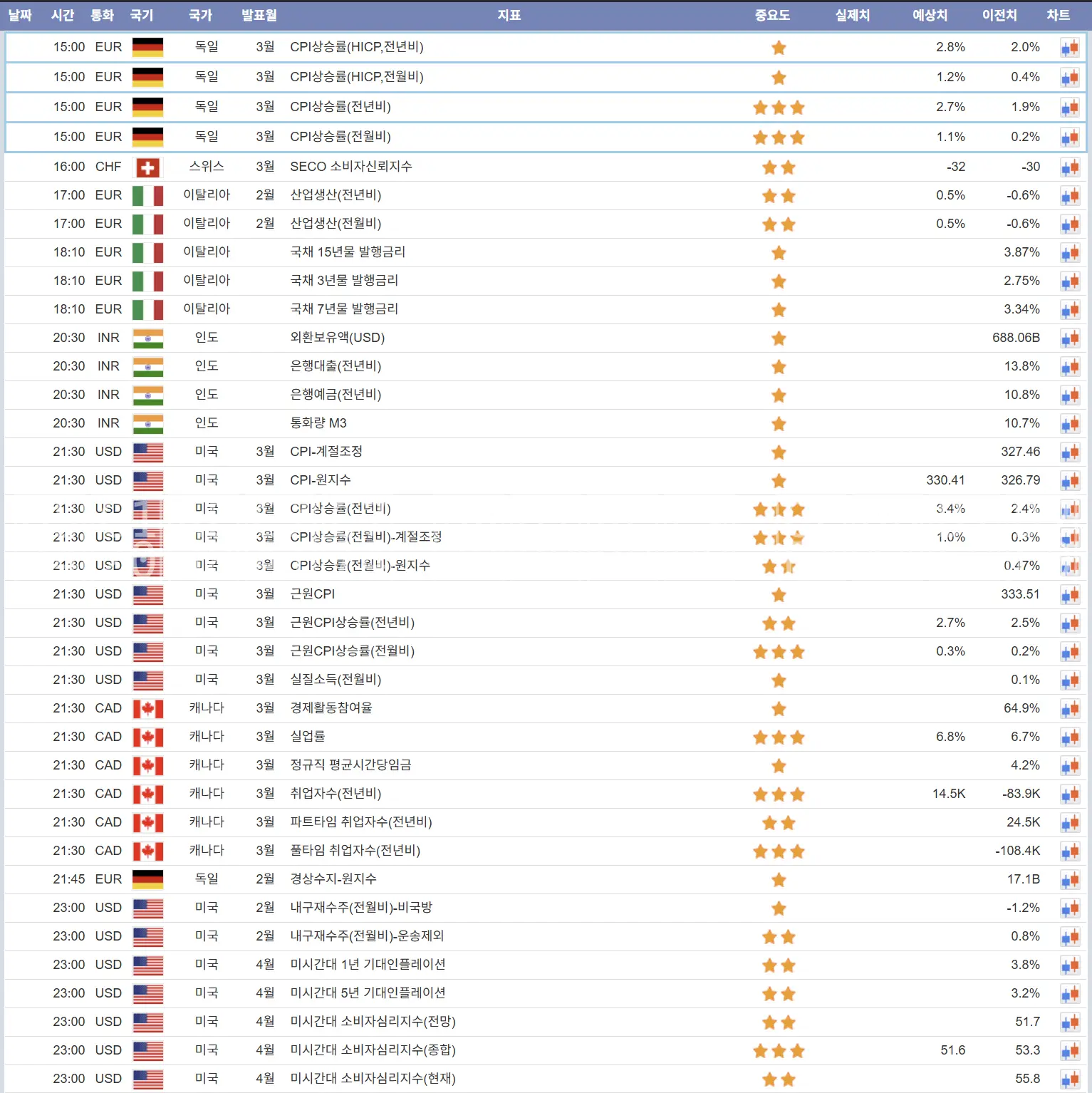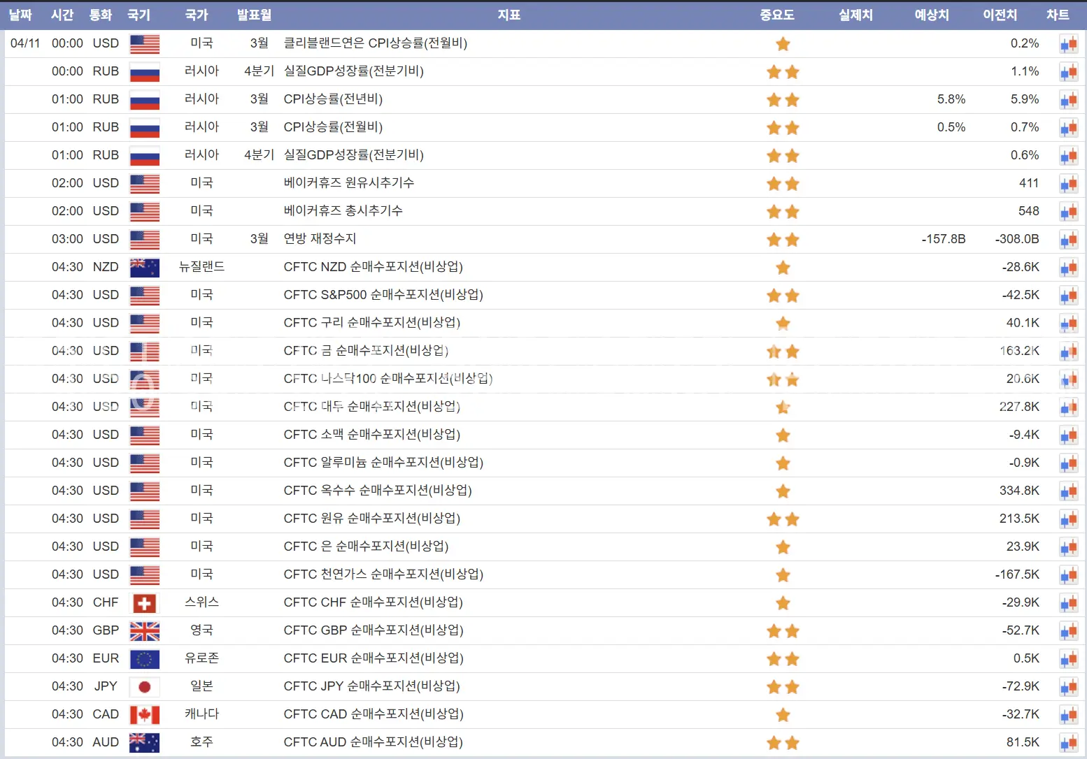 4월10일 해외선물 경제지표 발표일정입니다. -해선길잡이