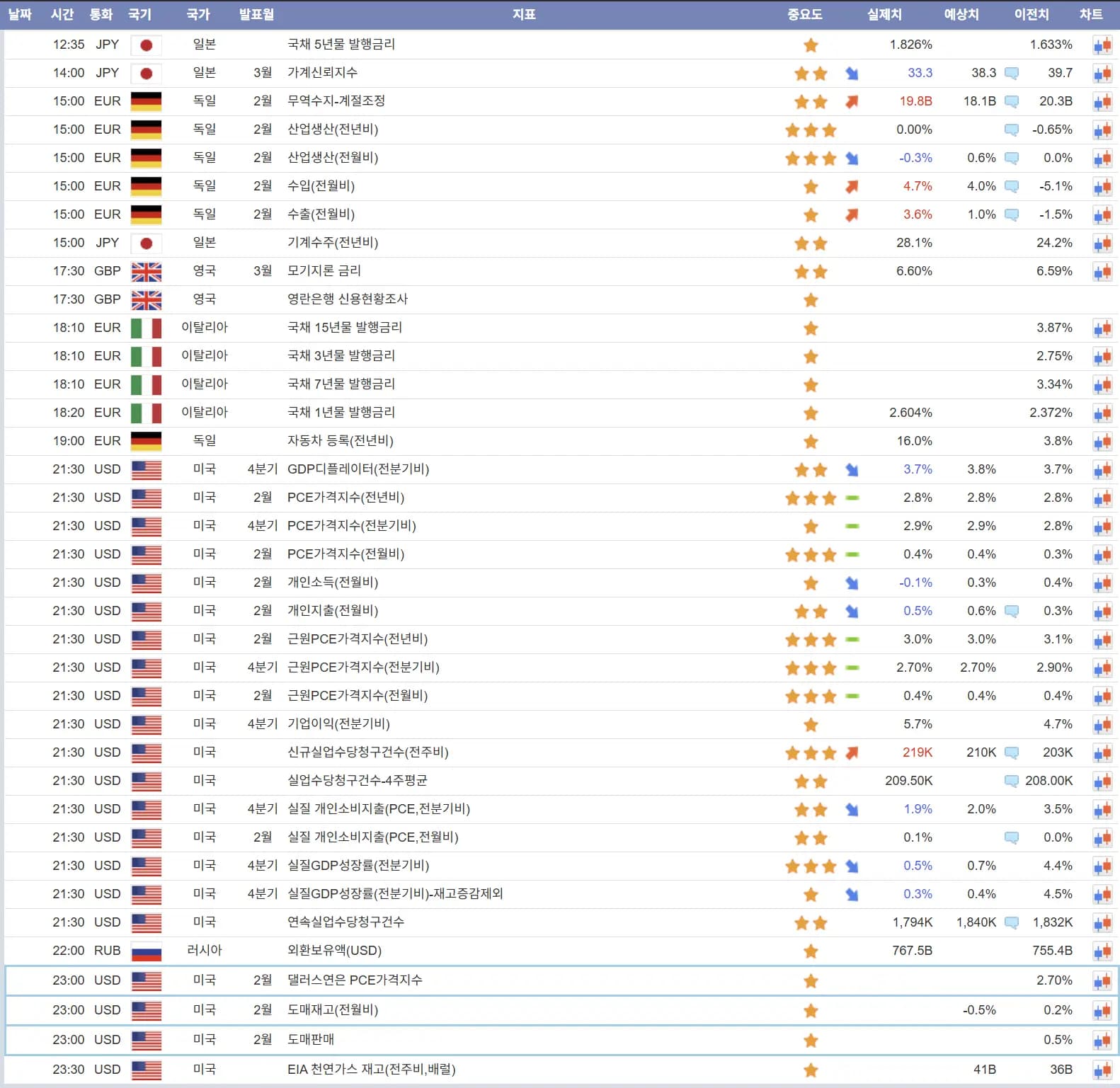4월13일 해외선물 경제지표 발표일정입니다. -해선길잡이