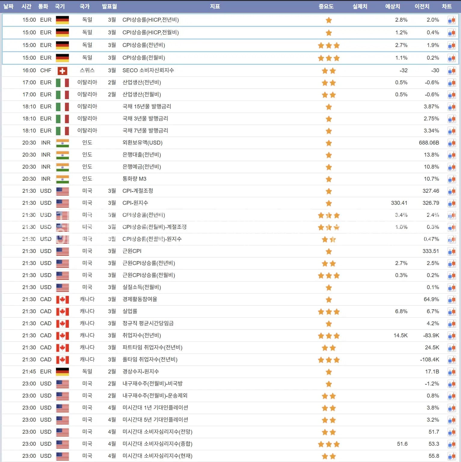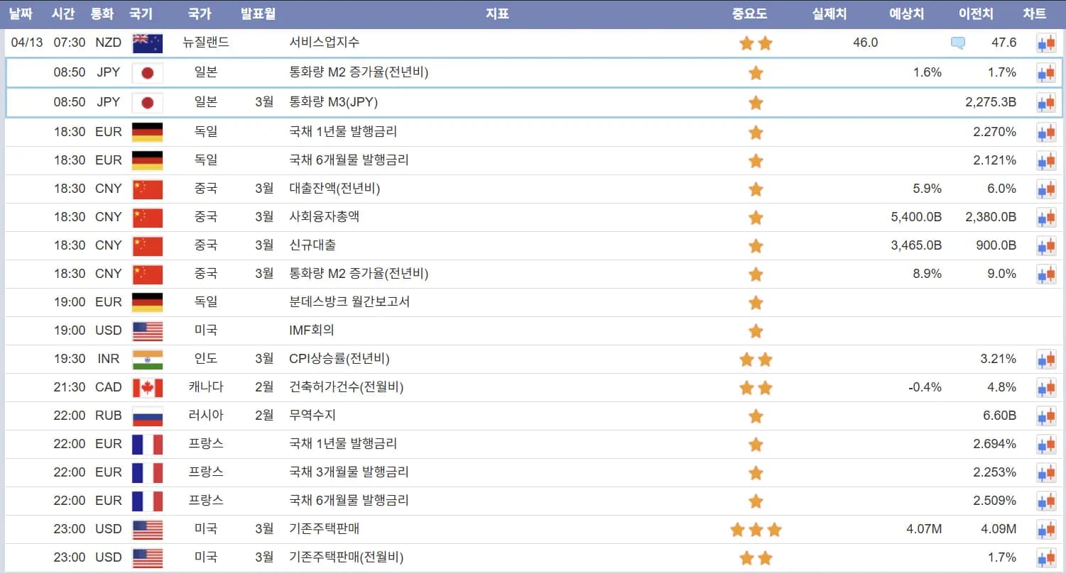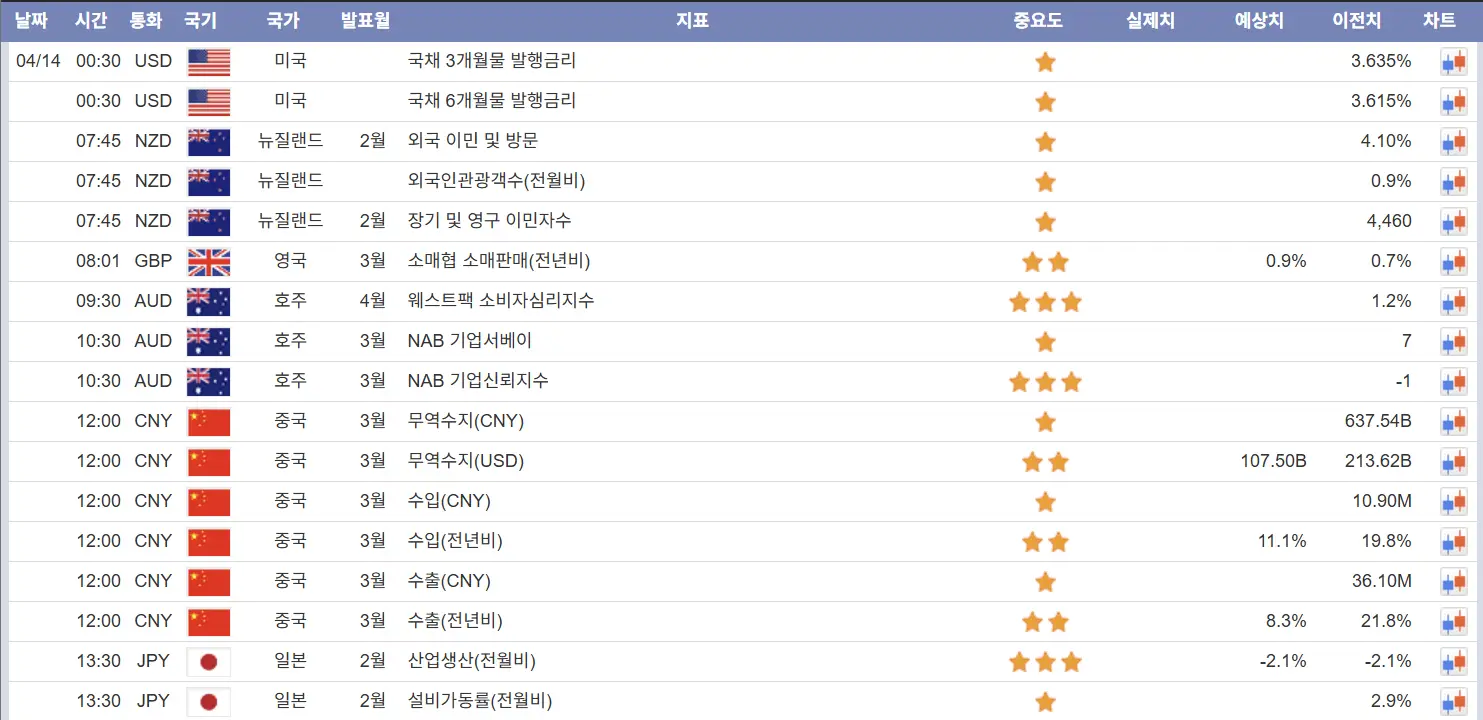4월13일 해외선물 경제지표 발표일정N