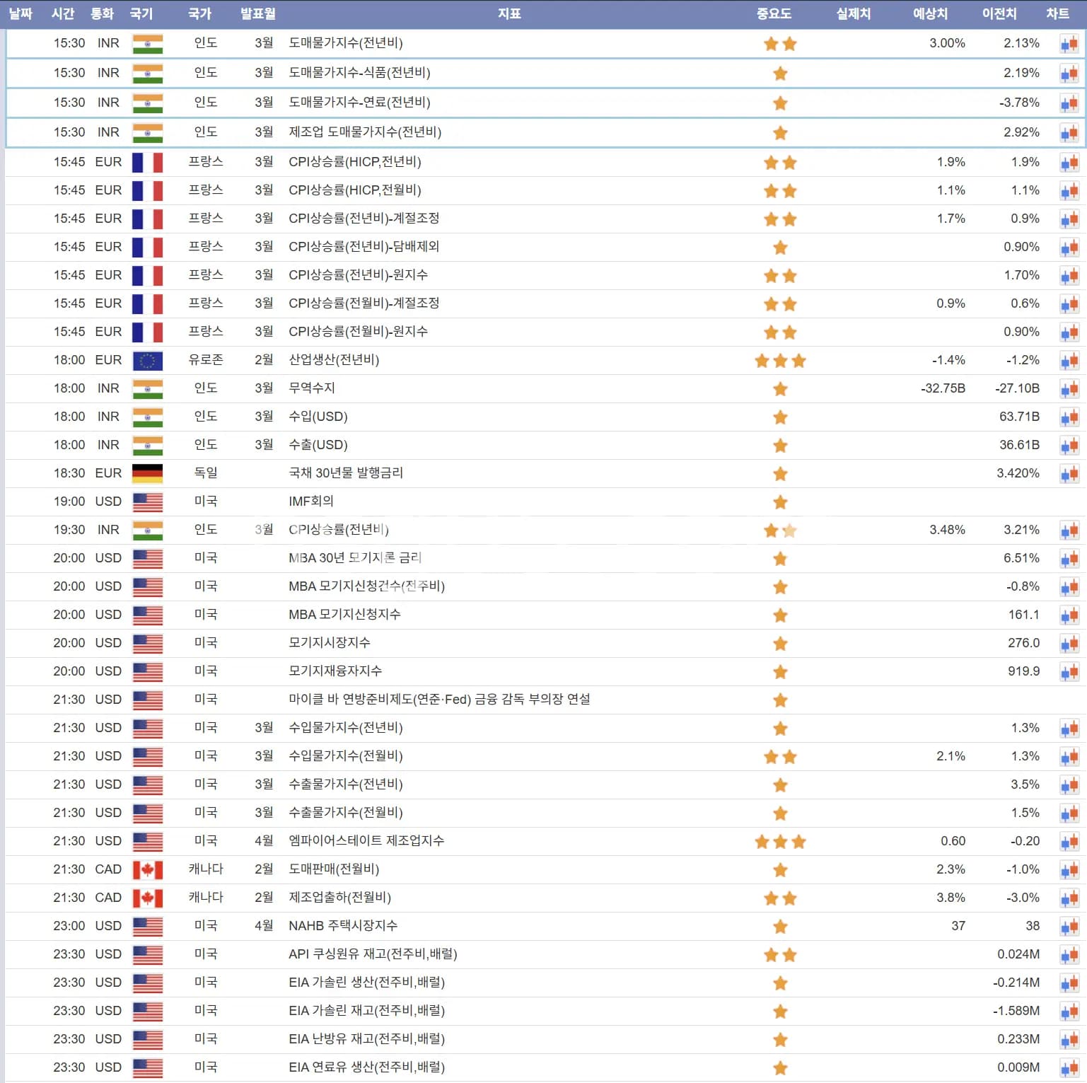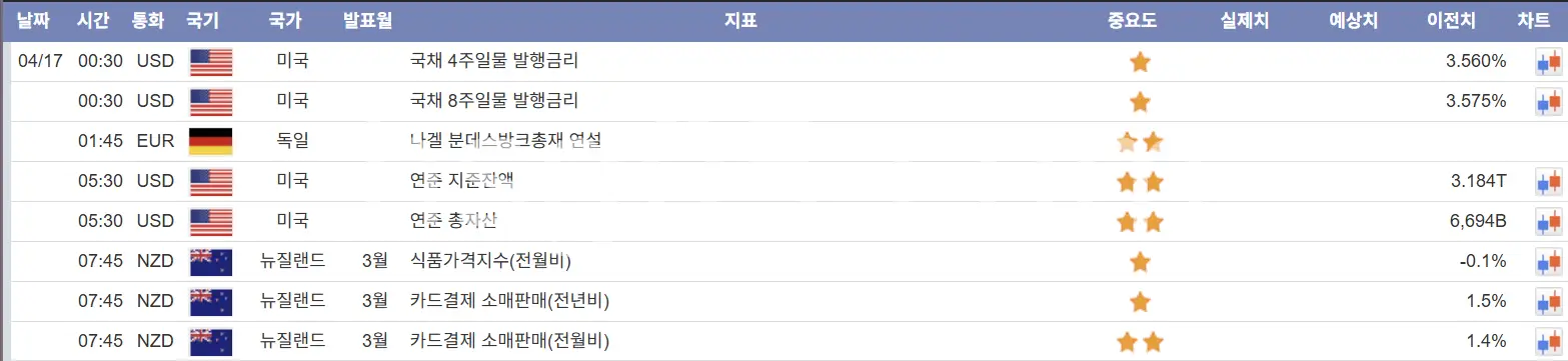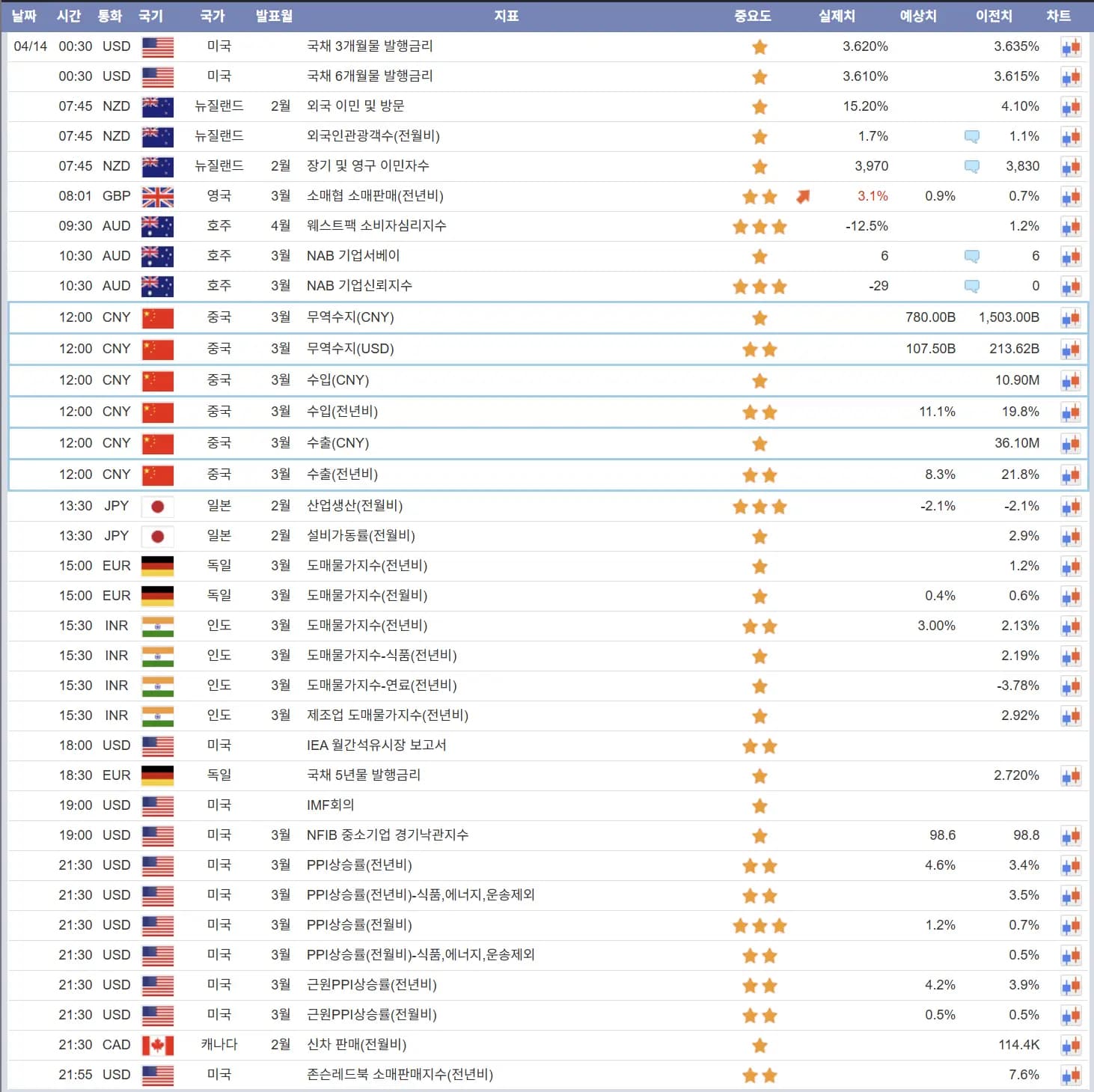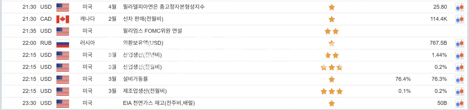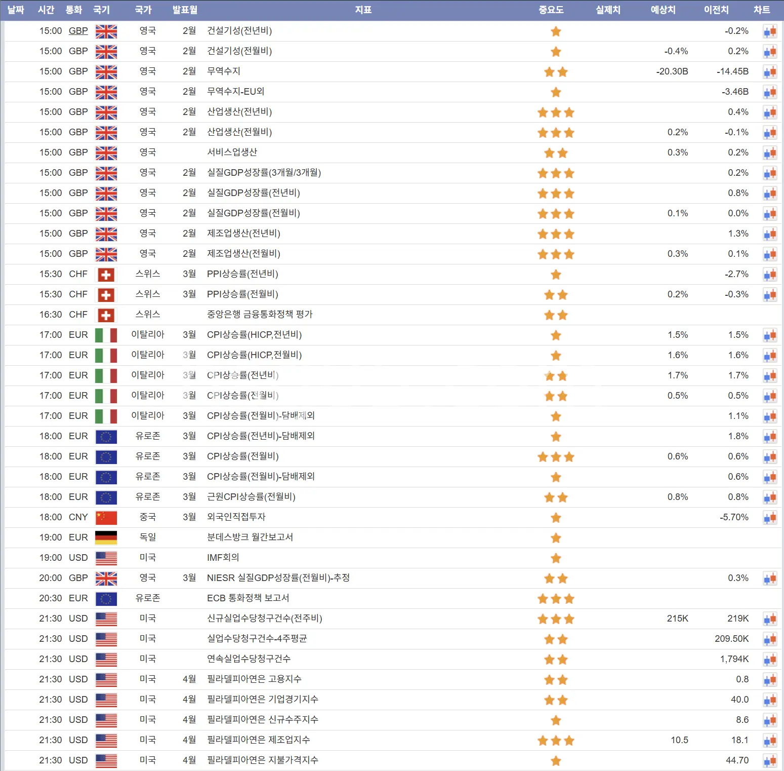 4월16일 해외선물 경제지표 발표일정입니다. -해선길잡이