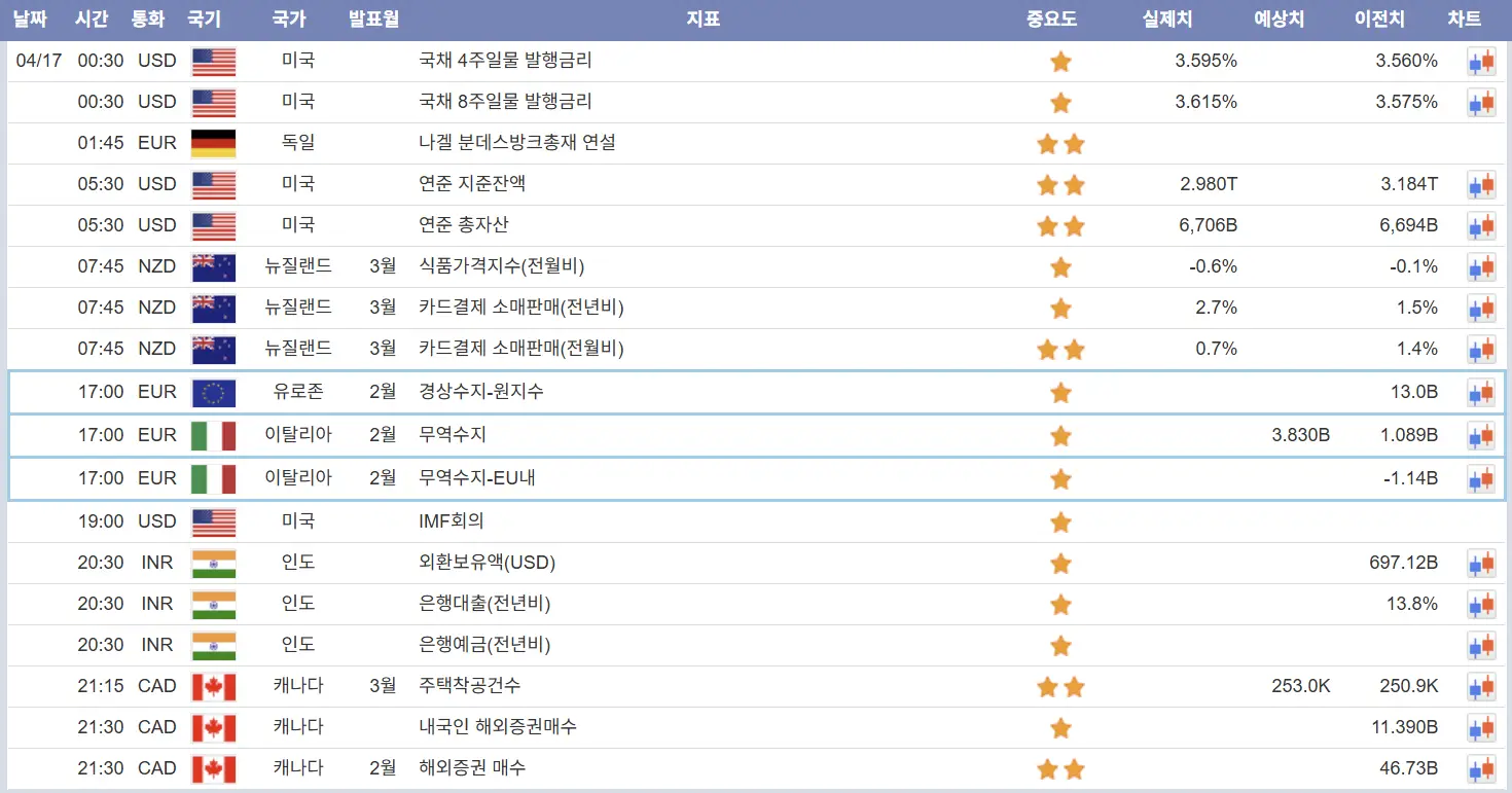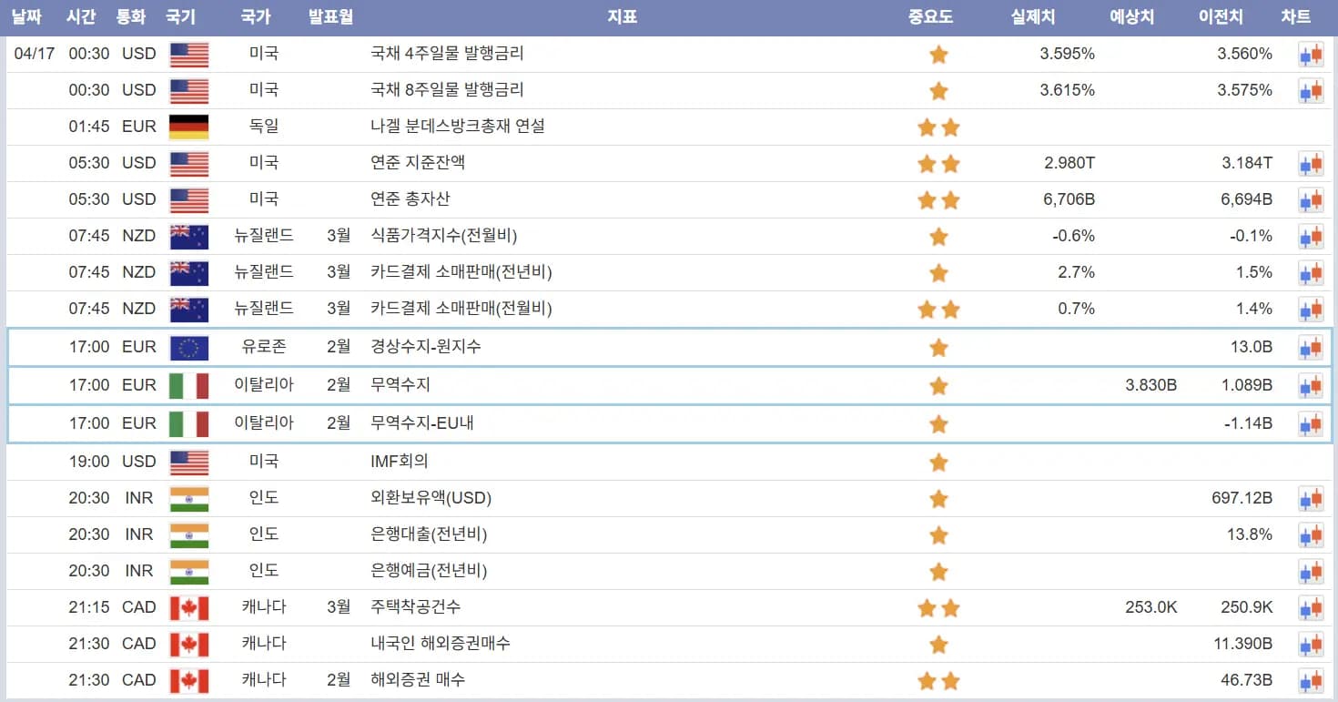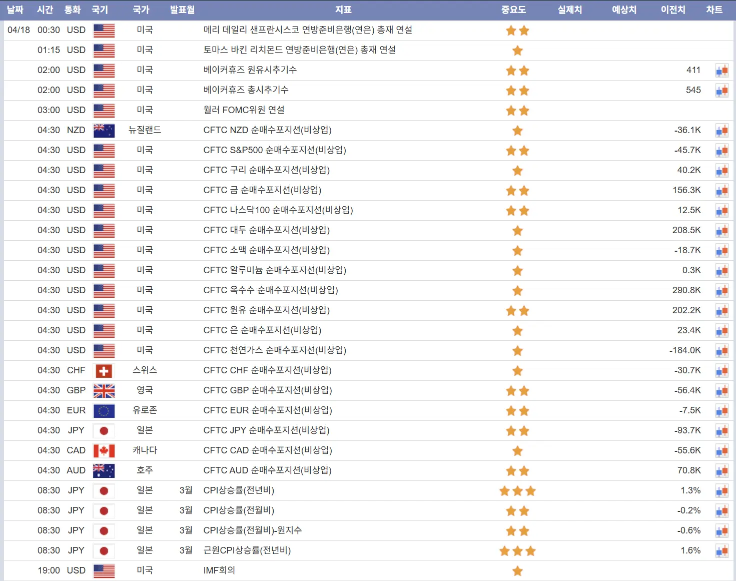 4월17일 해외선물 경제지표 발표일정입니다. -해선길잡이