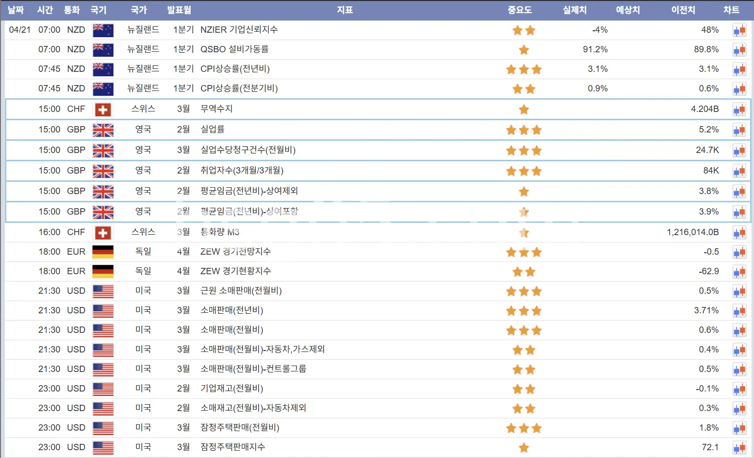 4월21일 해외선물 경제지표 발표일정입니다. -해선길잡이