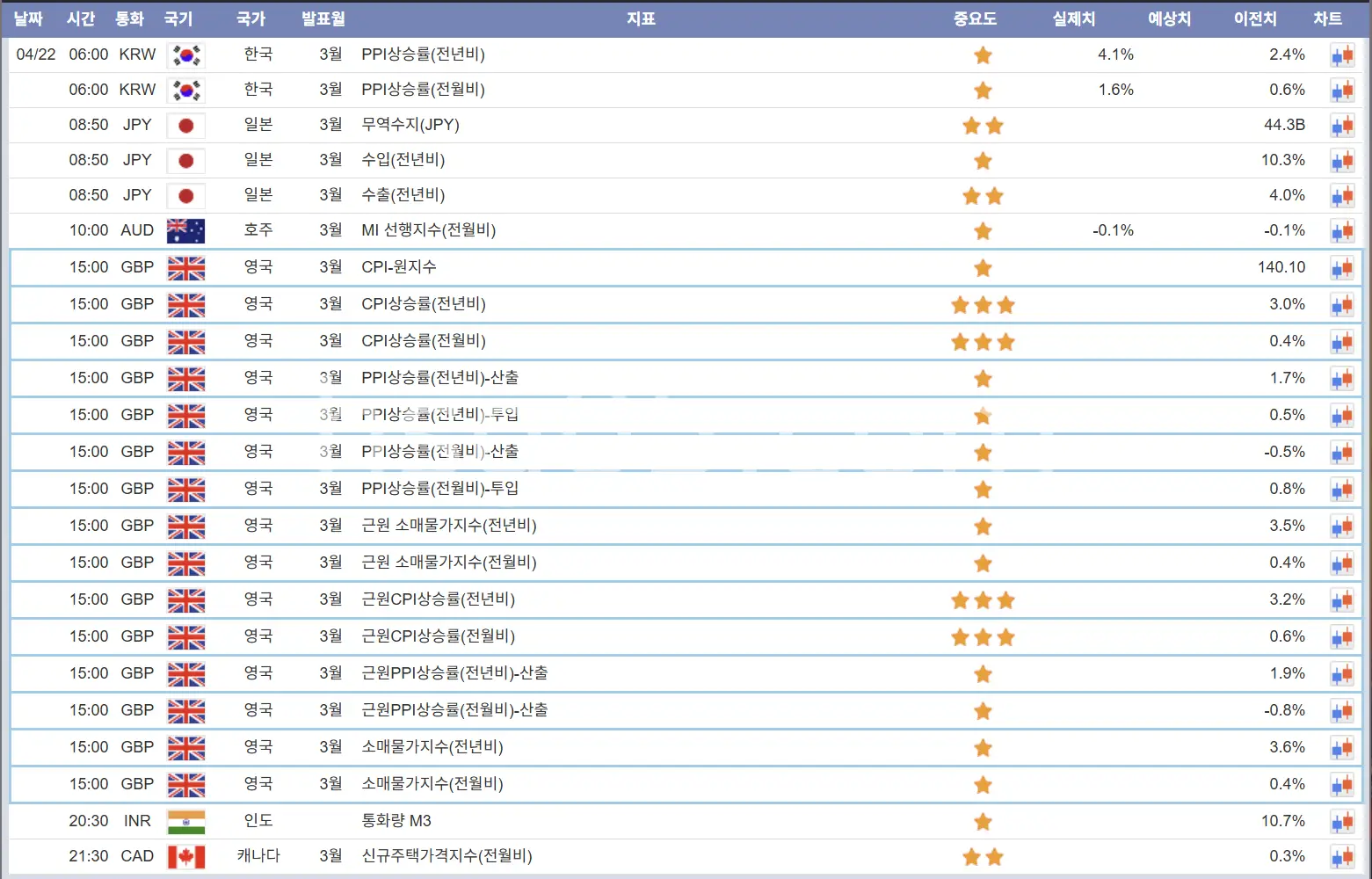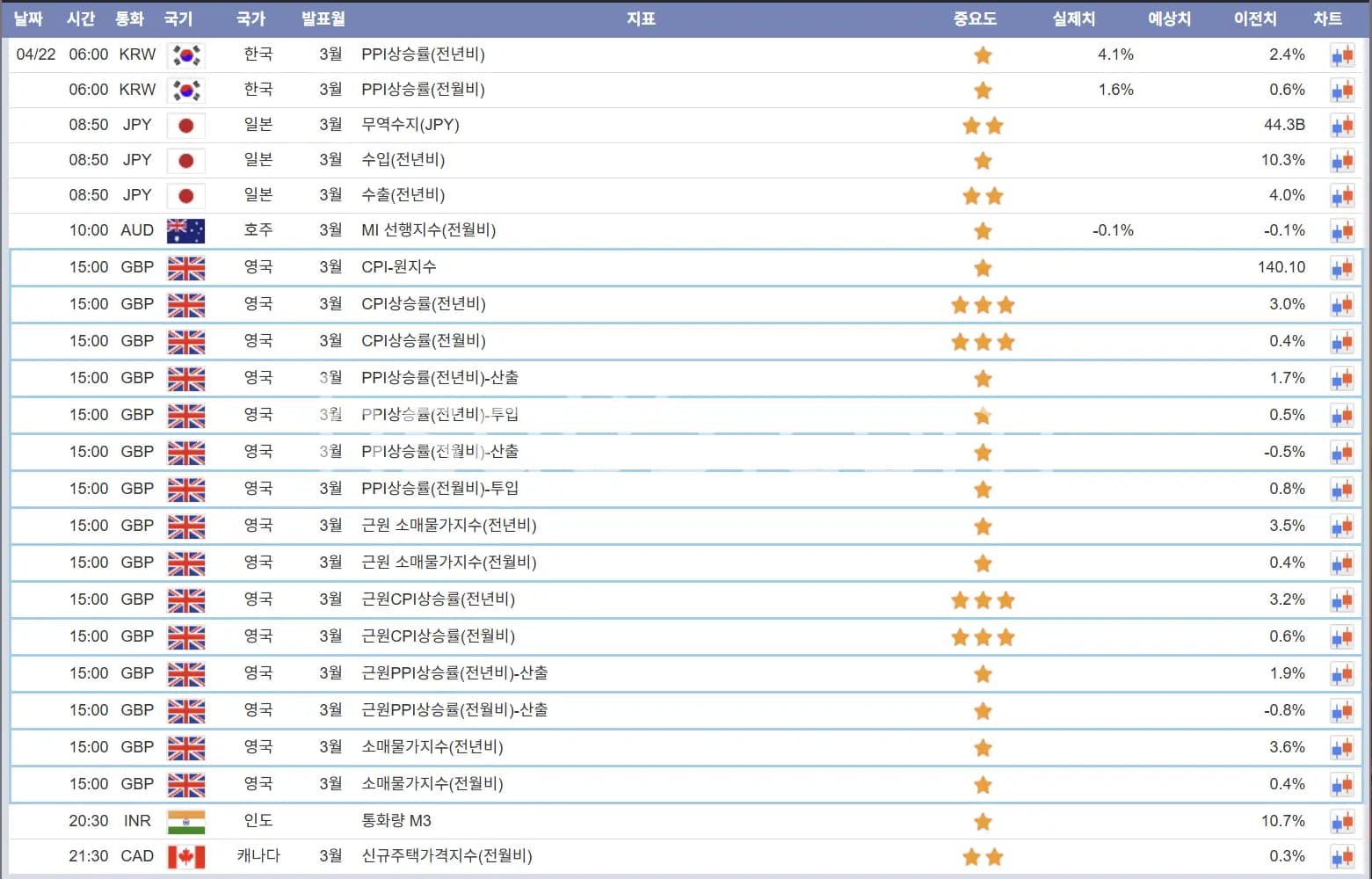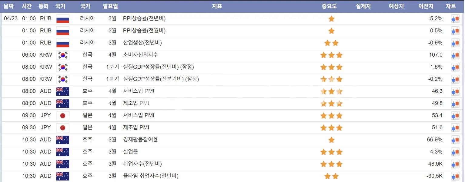 4월22일 해외선물 경제지표 발표일정입니다. -해선길잡이