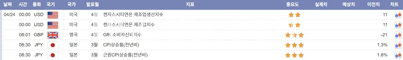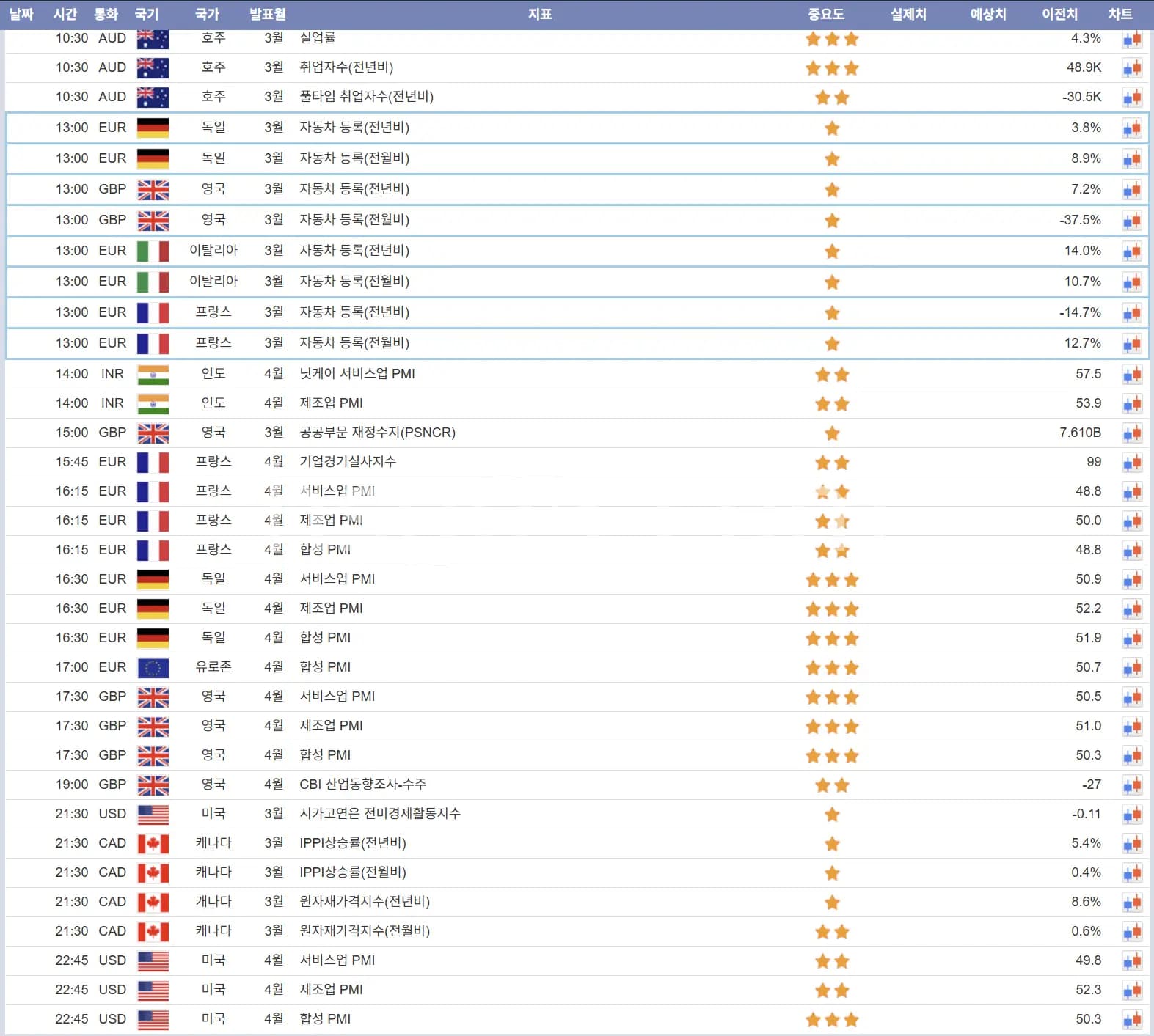 4월23일 해외선물 경제지표 발표일정입니다. -해선길잡이