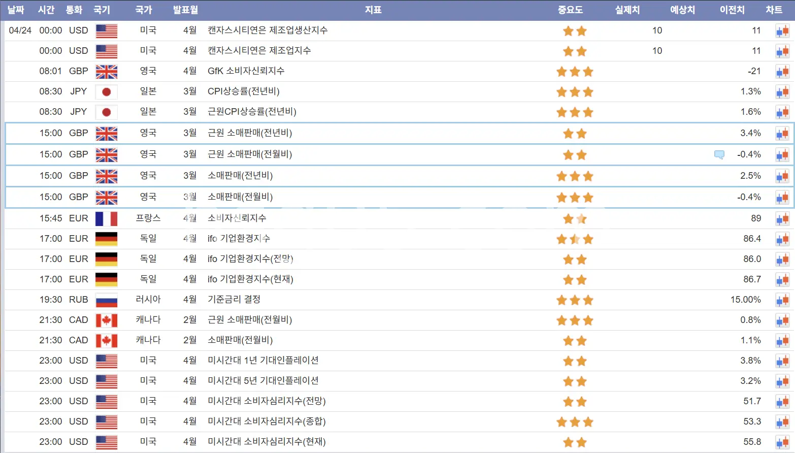 4월24일 해외선물 경제지표 발표일정입니다. -해선길잡이