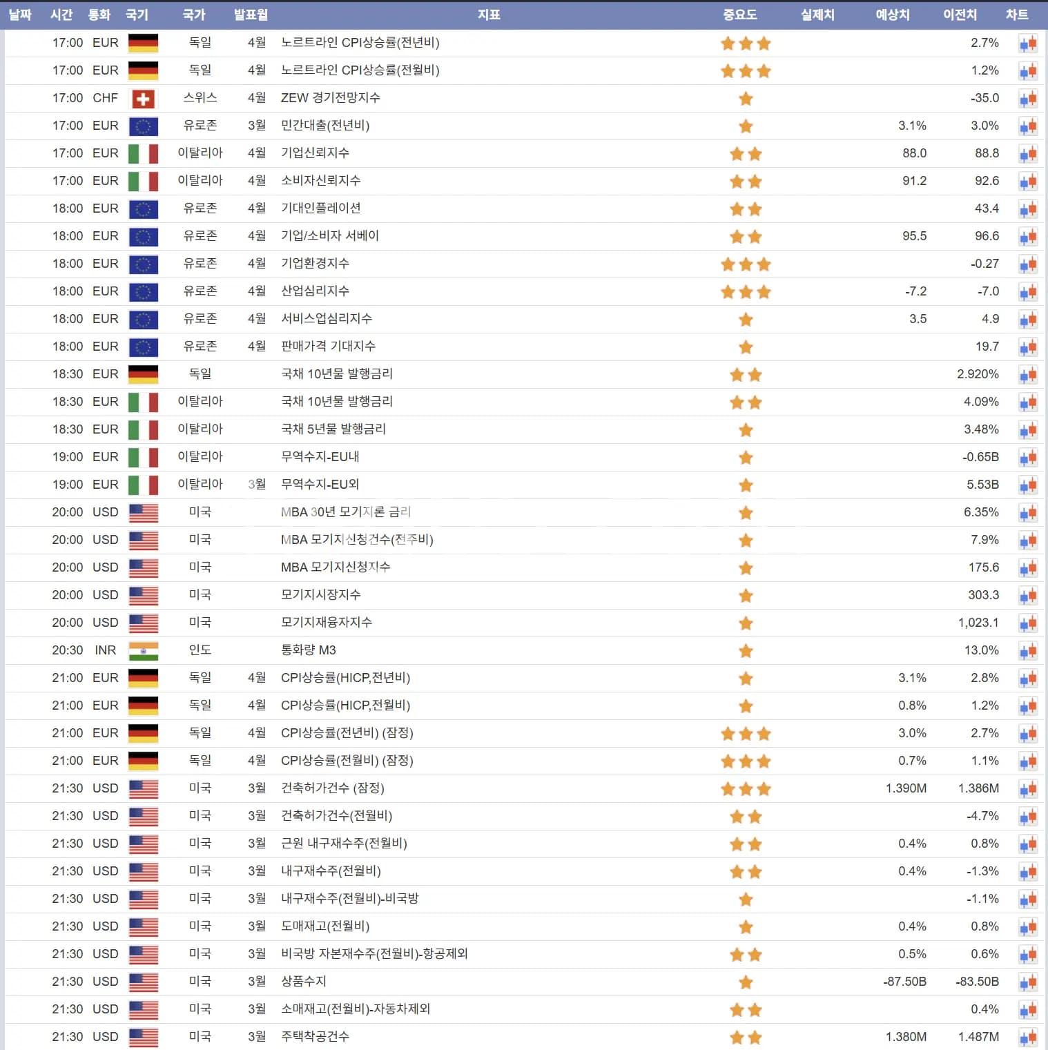 4월17일 해외선물 경제지표 발표일정