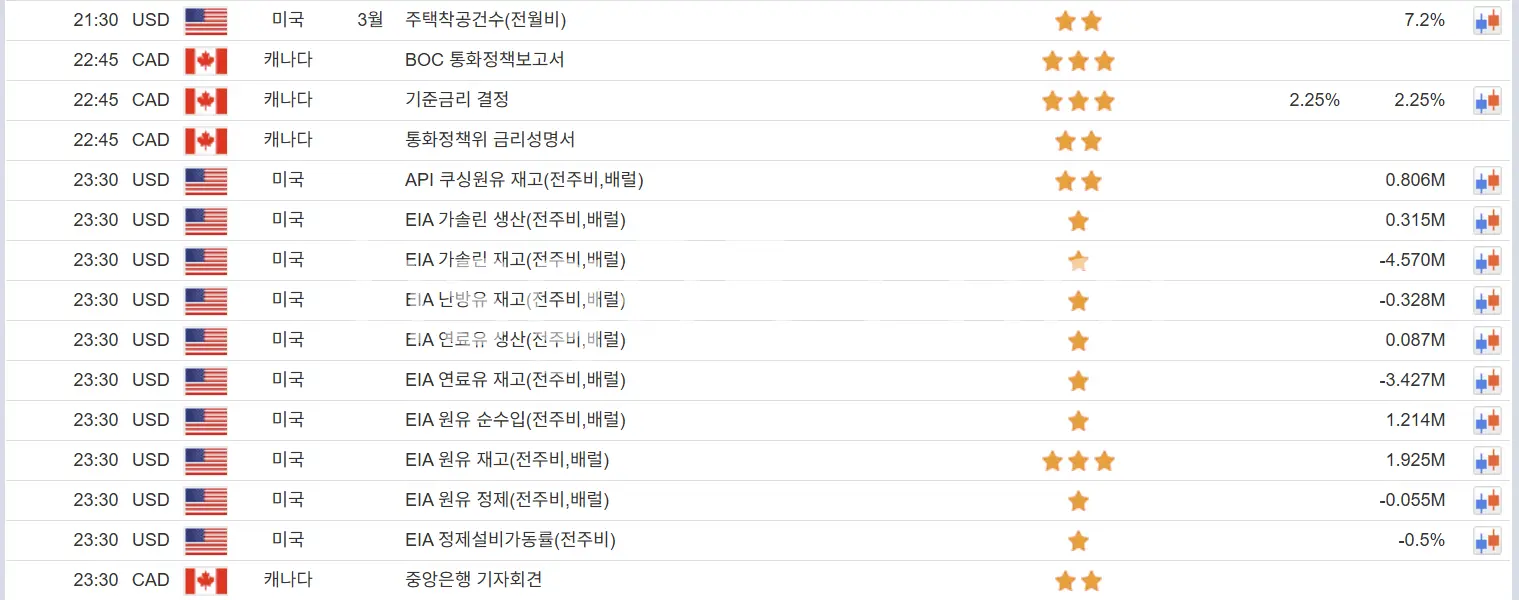 4월22일 해외선물 경제지표 발표일정