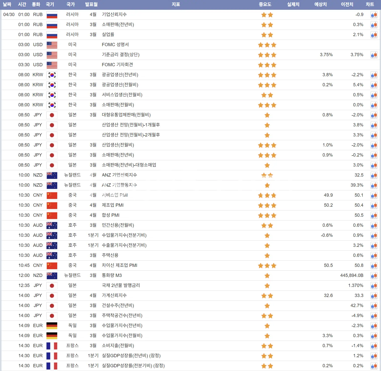 4월29일 해외선물 경제지표 발표일정
