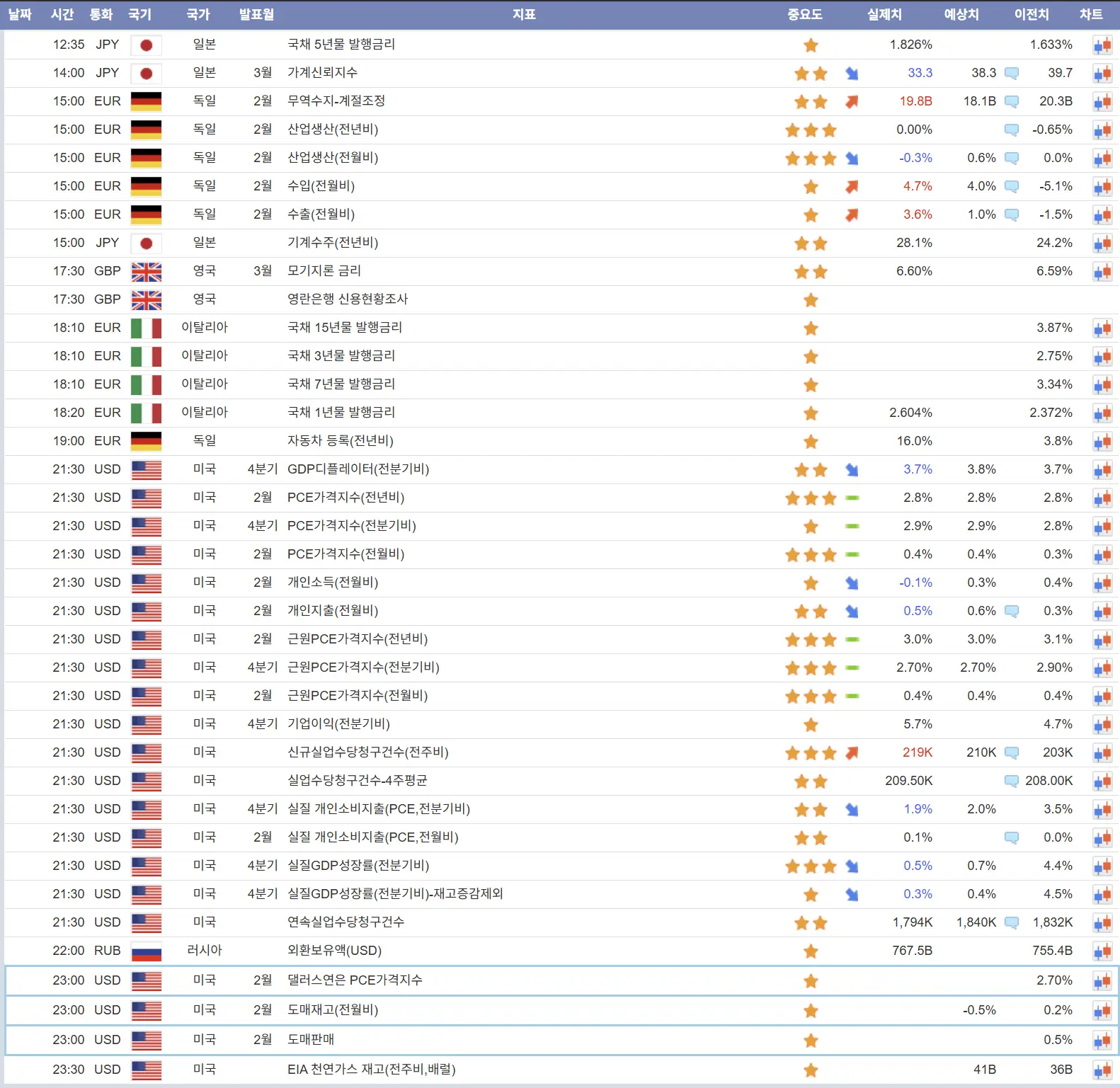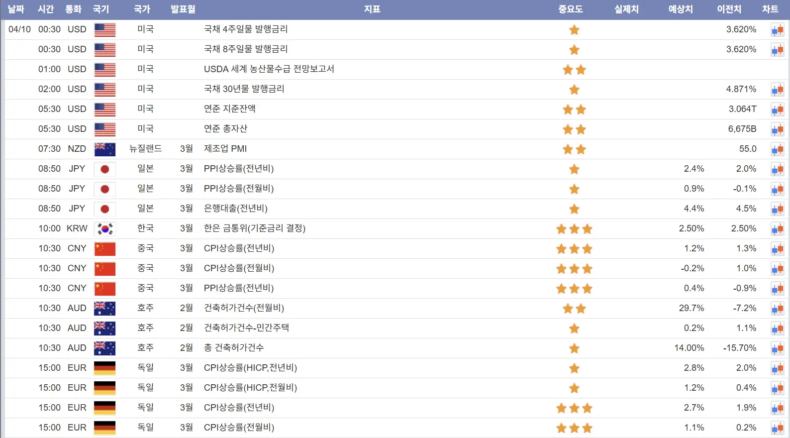 4월9일 해외선물 경제지표 발표일정입니다. -해선길잡이