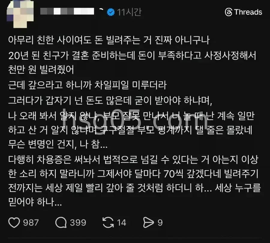 아무리 친한친구여도 돈을 빌려주면 안되는 이유