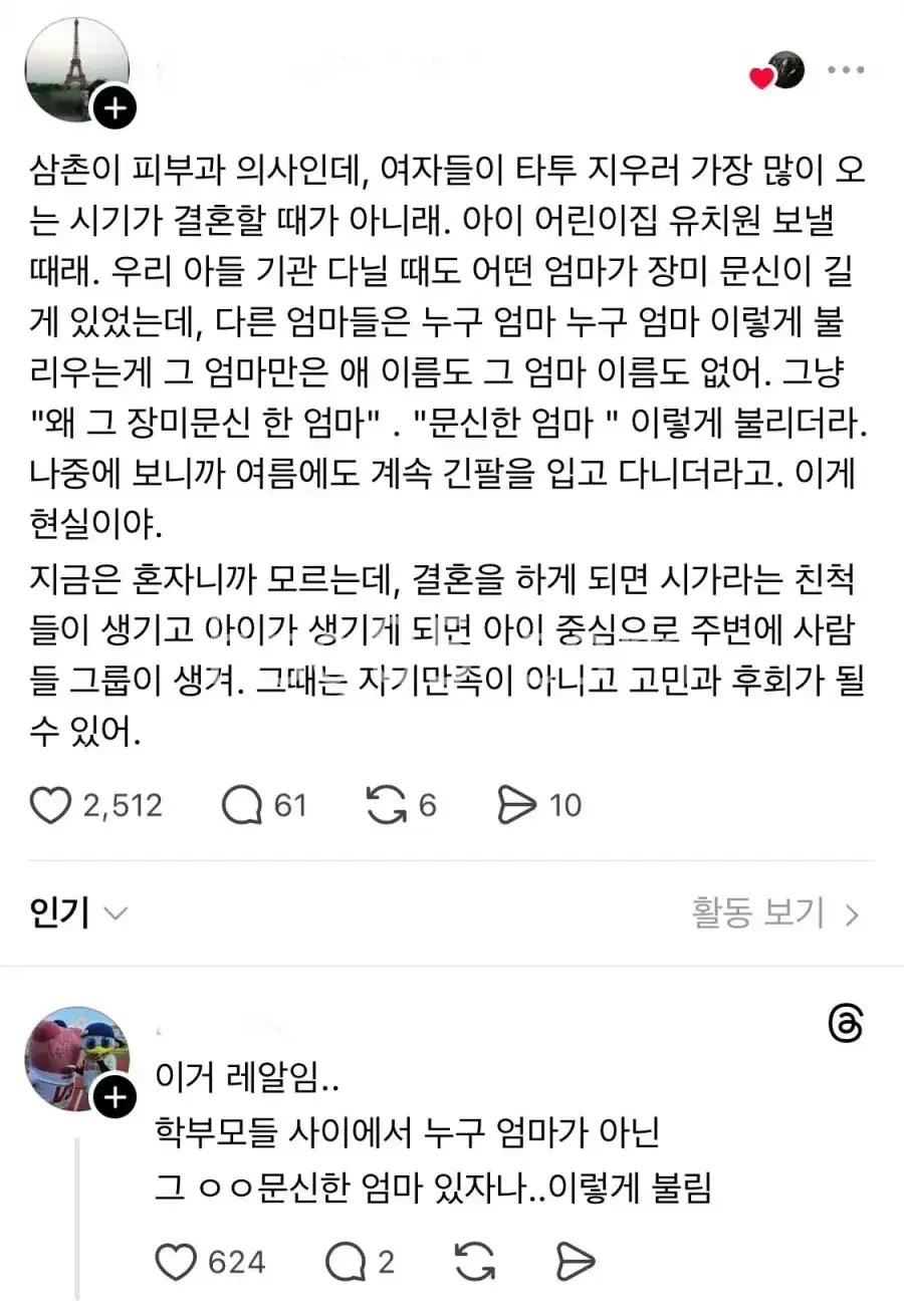 문신한 여자는 평생 문란한 여자가 아니란 것을 증명하면서 살아야 한다고..