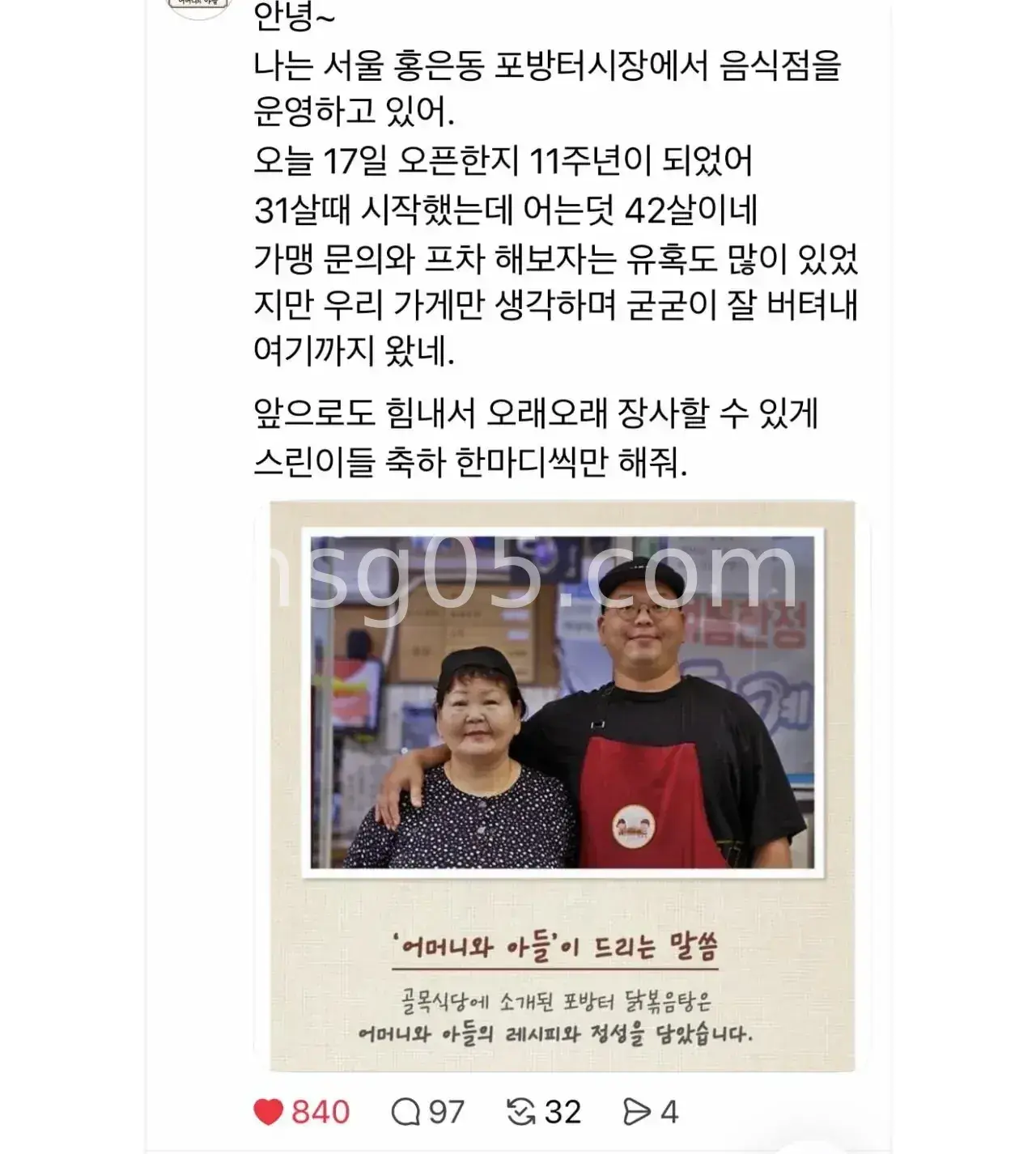 포방터 홍탁좌 스레드로 알린 근황.jpgN