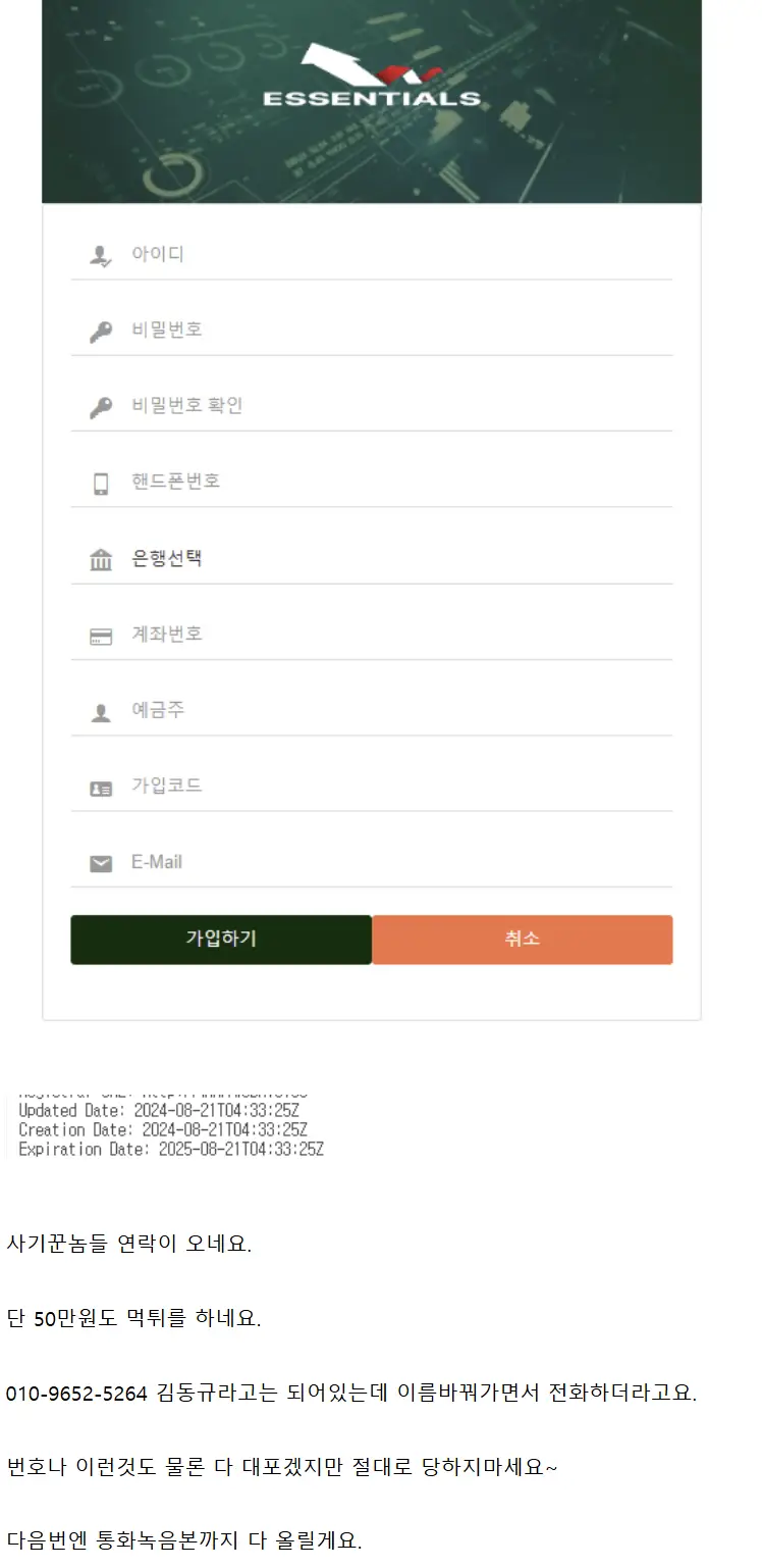 최근 ‘에센셜’ 업체에 대한 피해 제보가 접수되었습니다.