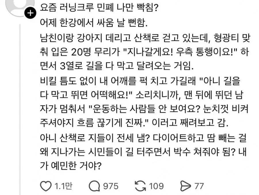 다시 기어나오고 있는 러닝크루 민폐짓N